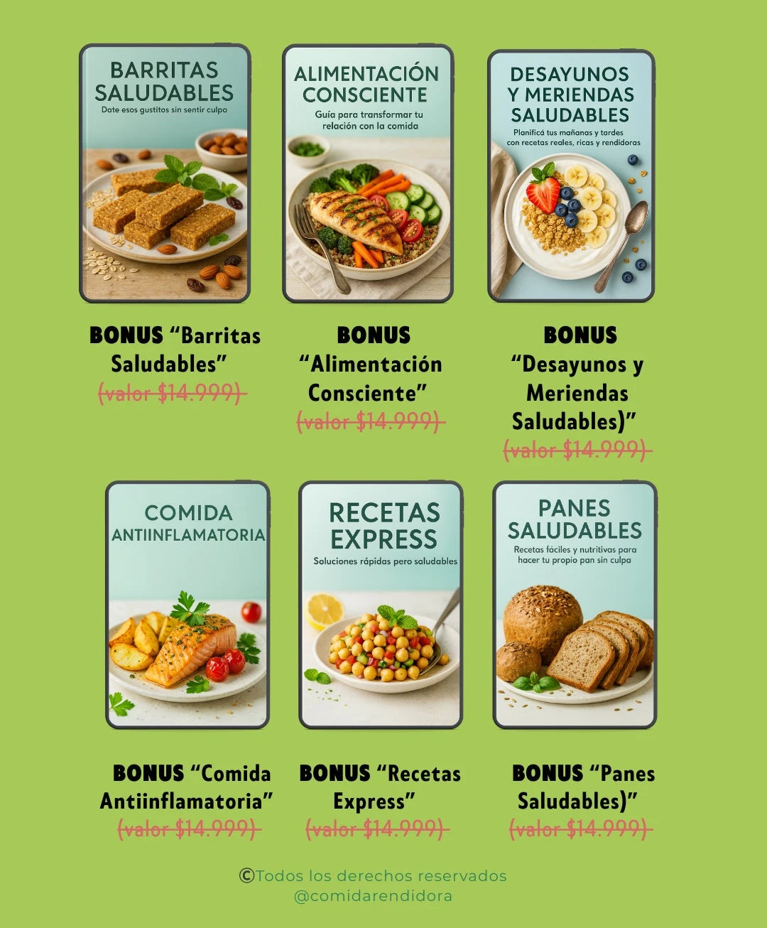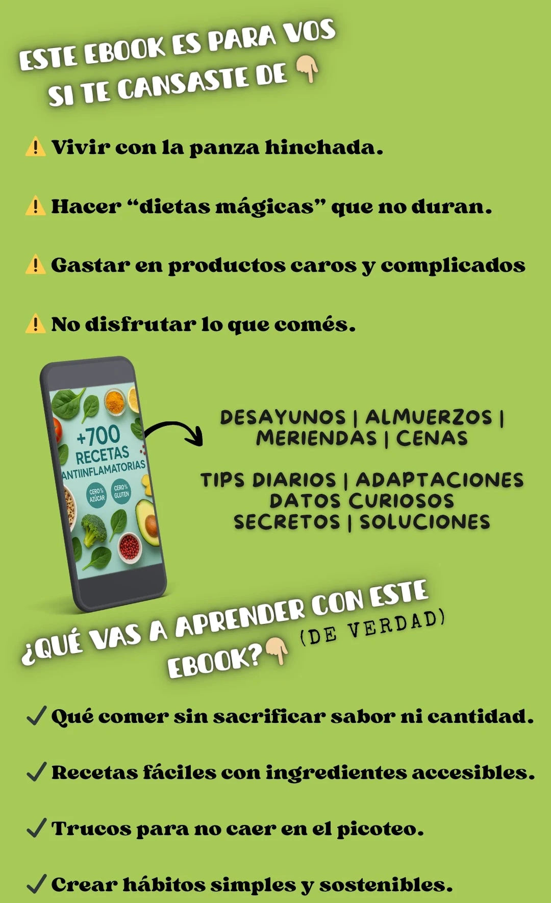 🌿 No es moda. Las recetas están basadas enprincipios reales de alimentación antiinflamatoria, respaldados por nutricionistas.
